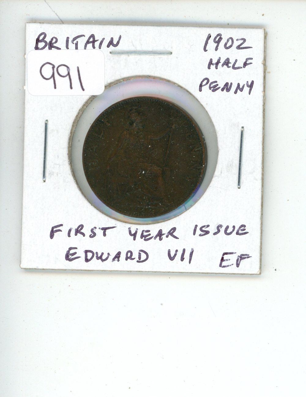 Great Britain. 1902 Half Penny. First Half Penny minted for King Edward VII. EF. Nice.