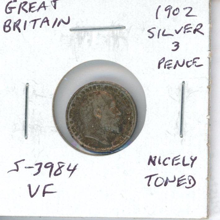 Great Britain. 1902 Silver 3 Pence. First issue of King Edward VII. VF. Nicely Toned.