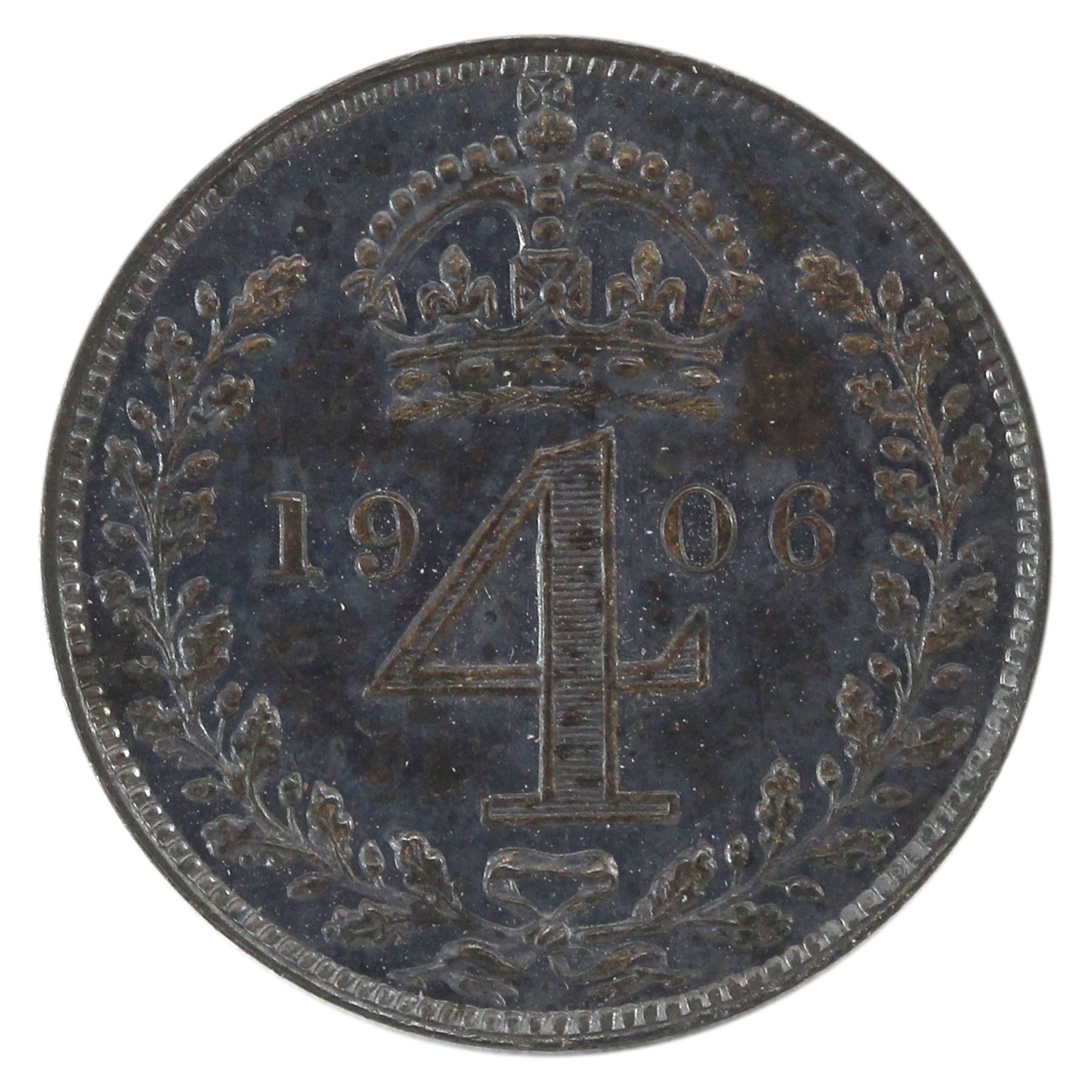 INCLUDES: 1 Penny, 2 Pence, 3 Pence & 4 Pence. Case shows some aging and wear. Coins are nicely toned with purple & red hues.