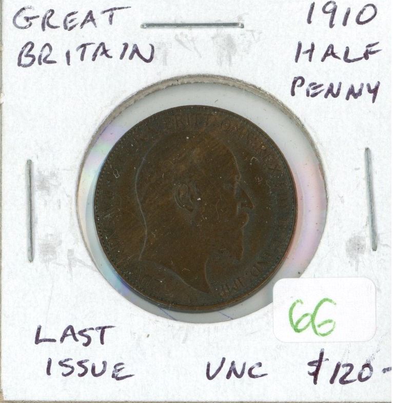 Great Britain. 1910 Half Penny. Issued during the last year of Edward VII. Uncirculated.