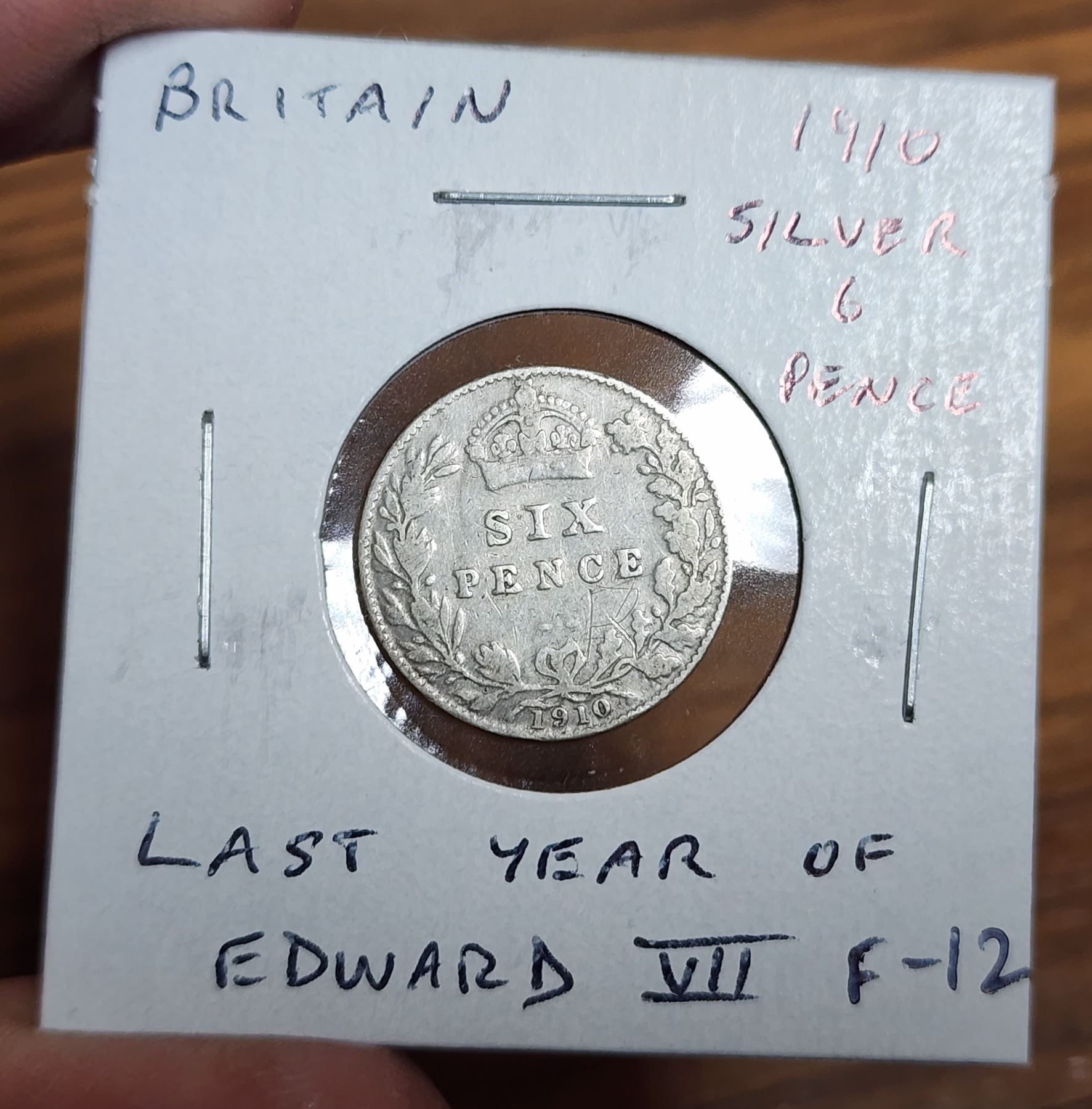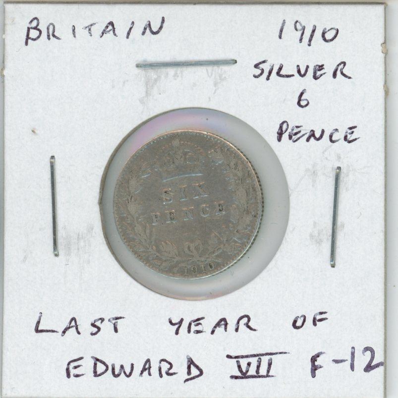 Great Britain. 1910 Silver 6 Pence. The last issue of King Edward VII. F-12.