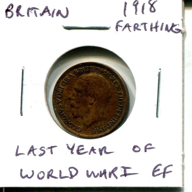 Great Britain. 1918 Farthing. Last year of World War I. EF-40.
