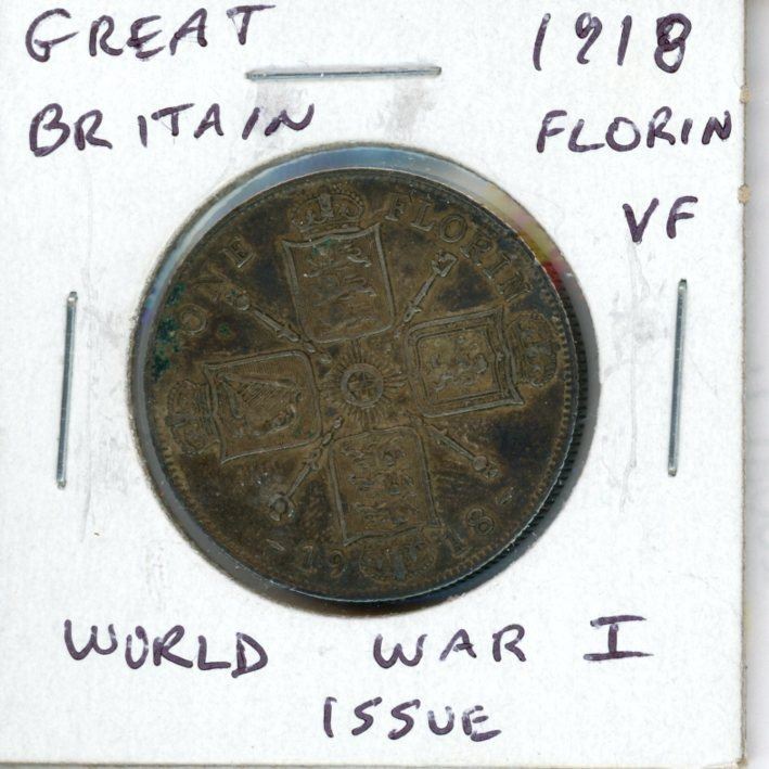 Great Britain. 1918 Silver Florin. World War I issue. VF. Nice.
