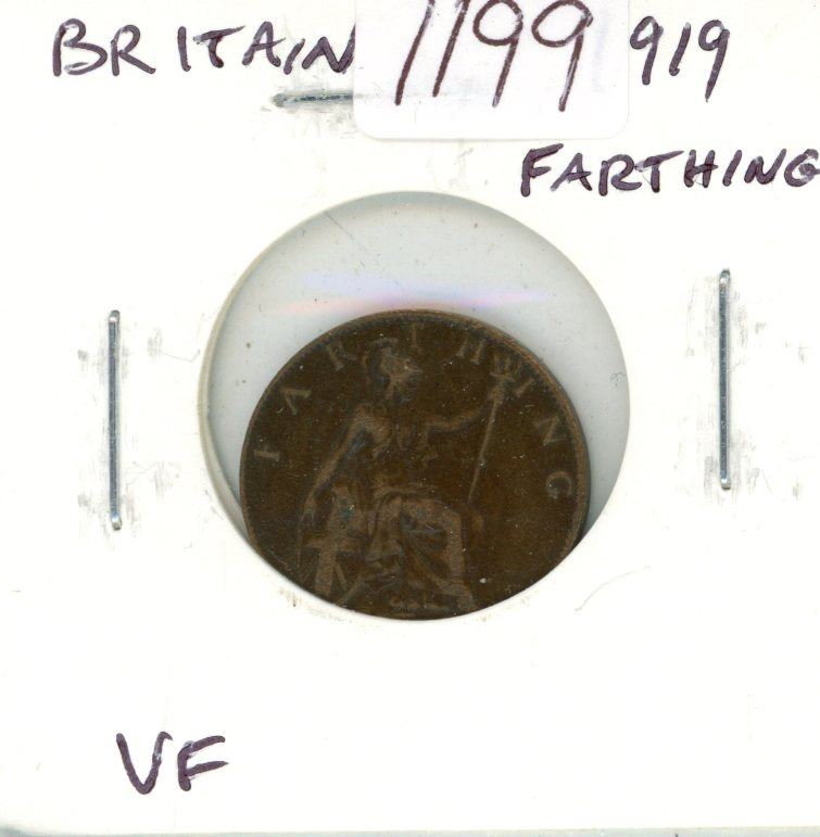 Great Britain. 1919 Farthing. First year of the Great Depression. VF.