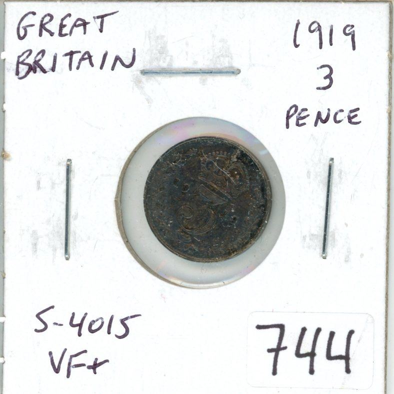 Great Britain. 1919 Silver 3 Pence. VF+.