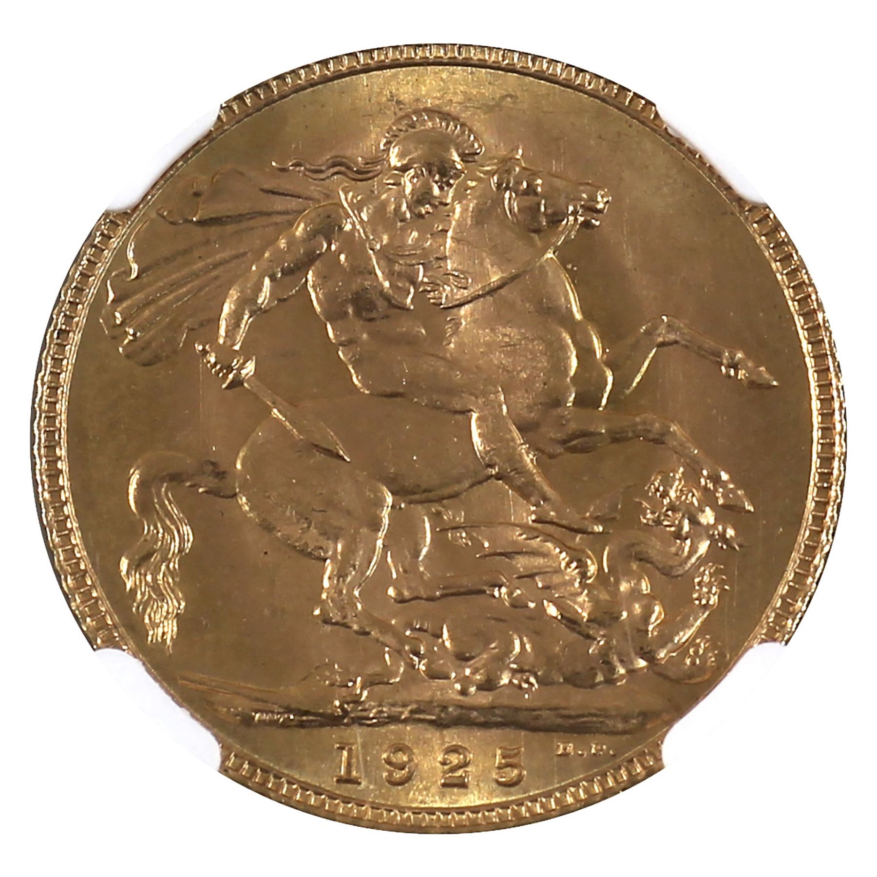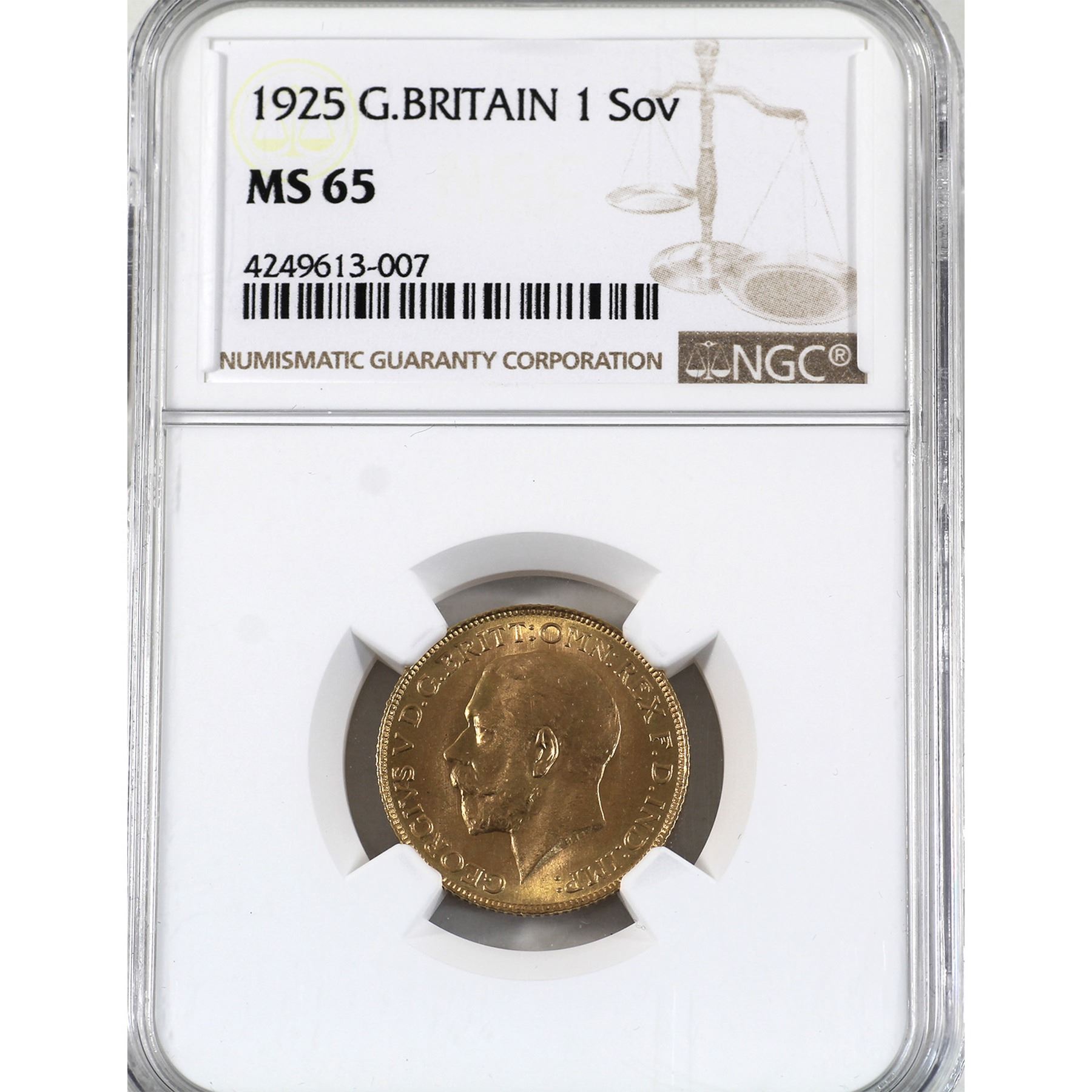 Great Britain 1925 Gold Sovereign NGC Certified MS-65! A pristine coin (22K Fine and contains 0.2354 oz. Pure)