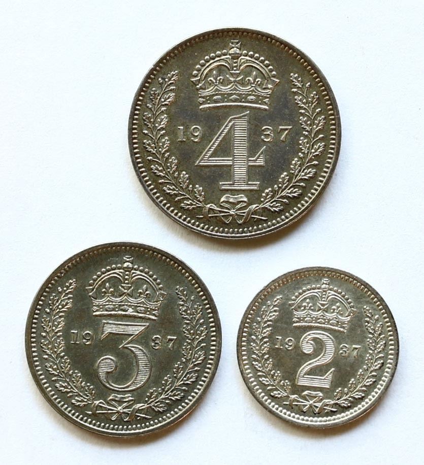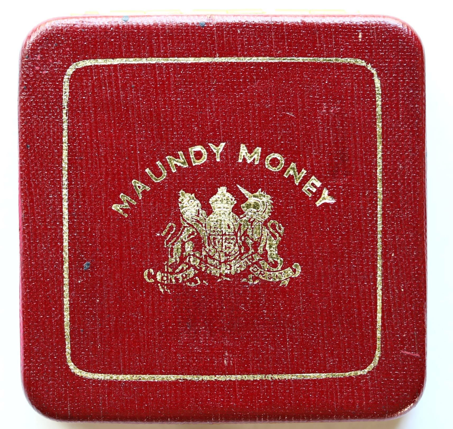 Great Britain; 1937 Maundy Money set housed in original red case. Missing 1P.