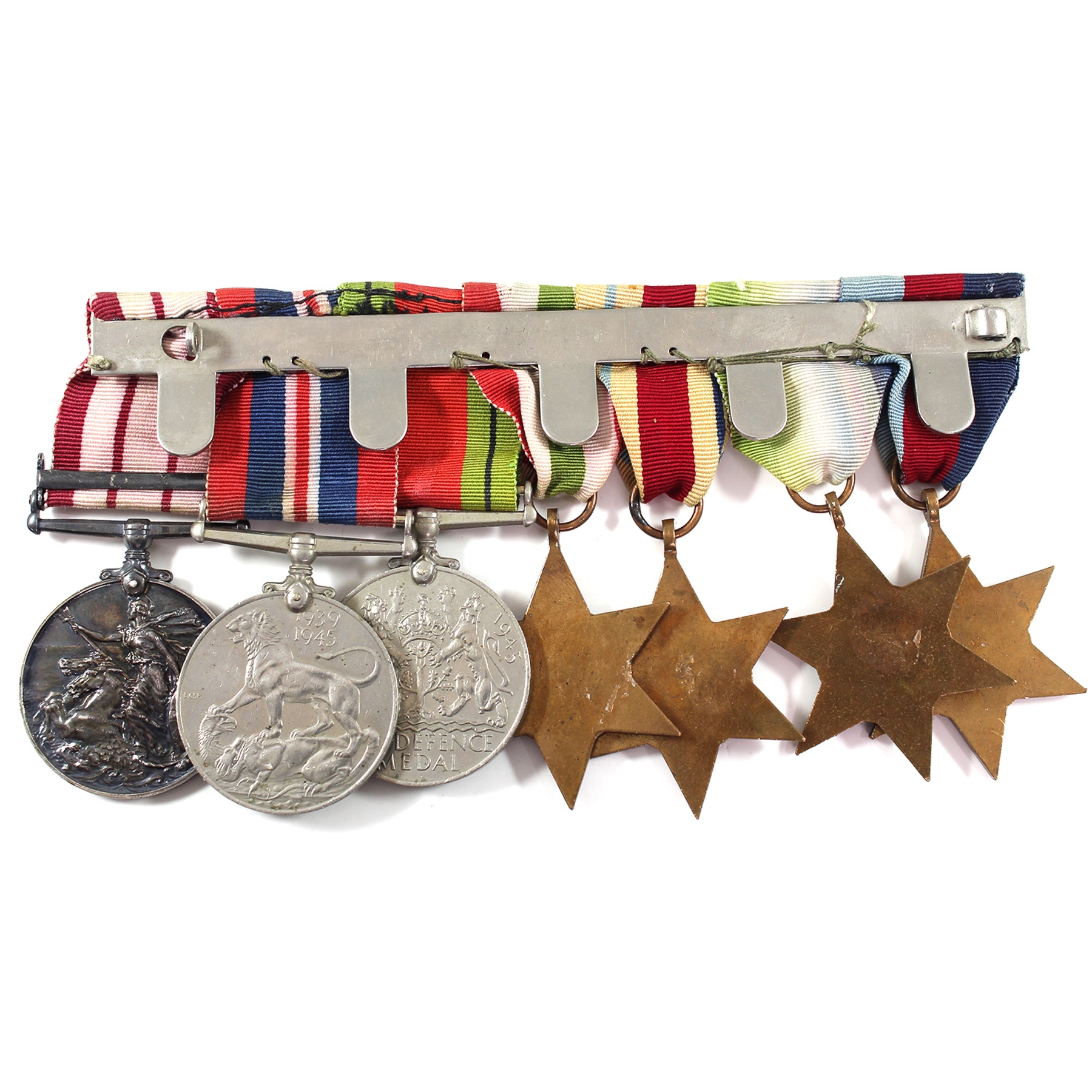 This lot includes the following 1939-1945 dated medals, The 1939-1945 Star, The Atlantic Star, The Africa Star, The Italy Star, The Defence Medal & War Medal, Awarded to British and Commonwealth forces during WWII. Naval General Service Medal CLASP: Palestine 1945-1948, NAMED: G. Dean Musn. Royal Marines. Some fading and or decolorization of some of the ribbons. Light handling wear to the medals. NGSM has beautiful plum patina throughout.