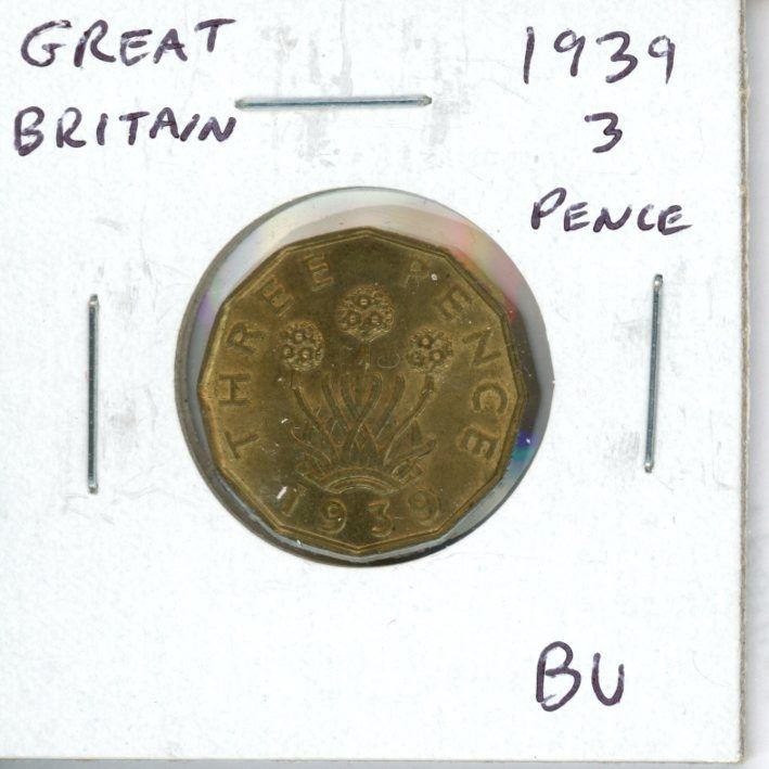 Great Britain. 1939 3 Pence. First Year of World War II. BU. Nice.