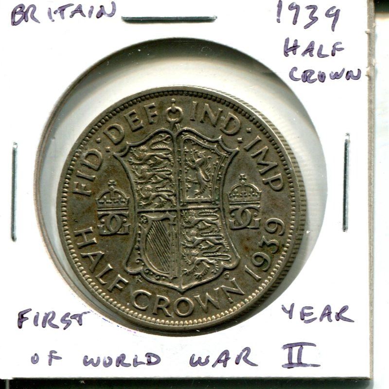Great Britain. 1939 Silver Half Crown. First year of World War II. VF-20.