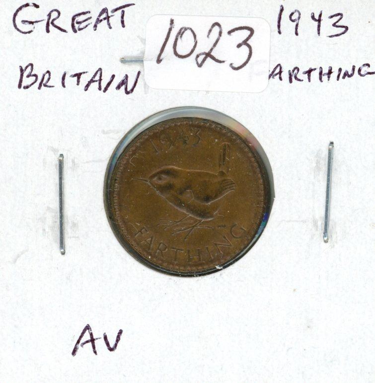 Great Britain. 1943 Farthing. Issued during World War II. AU-50 with Lustre. Nice.