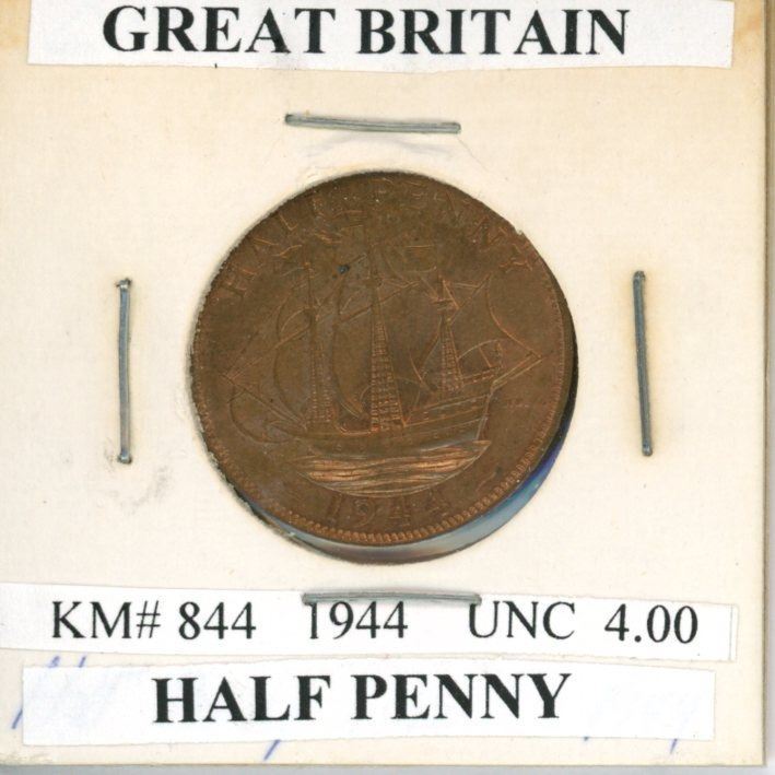 Great Britain. 1944 Half Penny. World War II issue Unc Red/Brown.