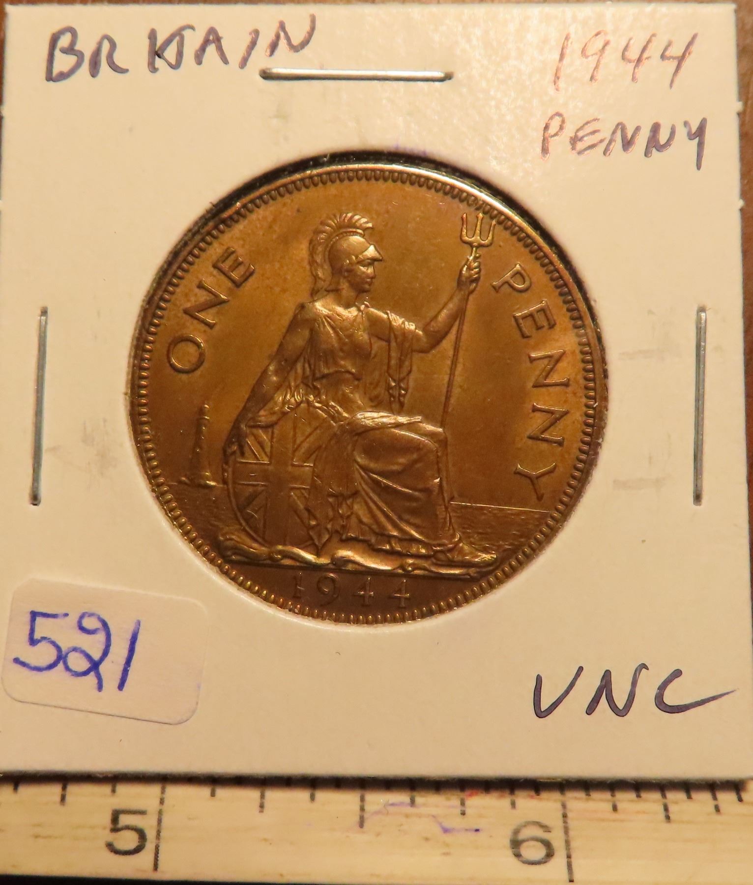 Great Britain. 1944 Penny. Issued during World War II. Uncirculated.