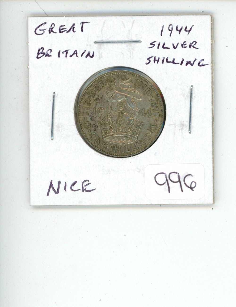Great Britain. 1944 Silver Shilling. World War II issue. EF. Nice.