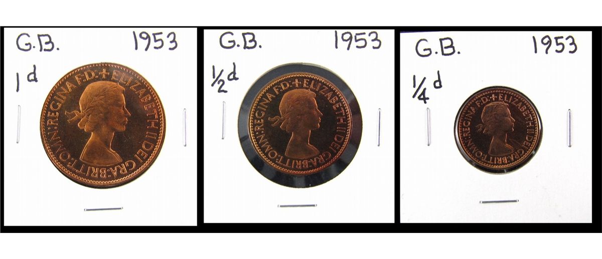 Great Britain 1953 1p, 1/2p & 1/4p all Proof. Red and lustrous.