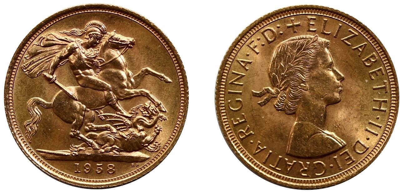 Great Britain; 1958 Gold Sovereign. UNC example.