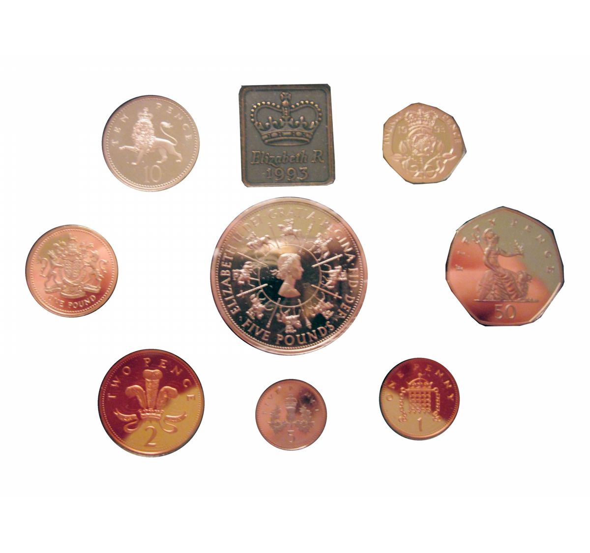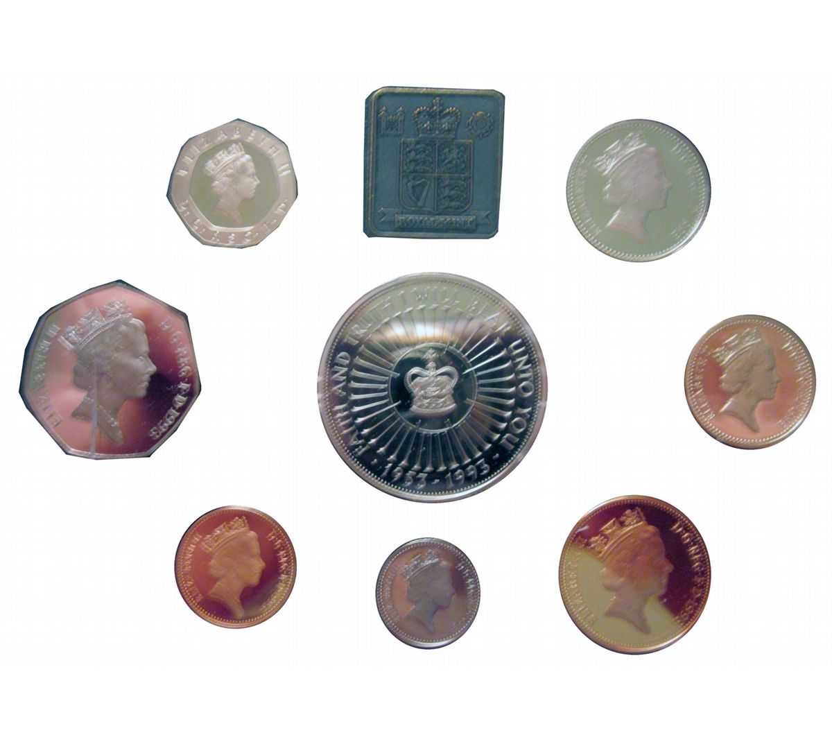 Great Britain 1993 Proof Set in Standard case (blue) 8 coins.