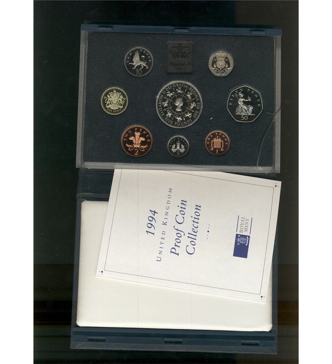 Great Britain 1993 Proof Set in Standard case (blue) 8 coins.