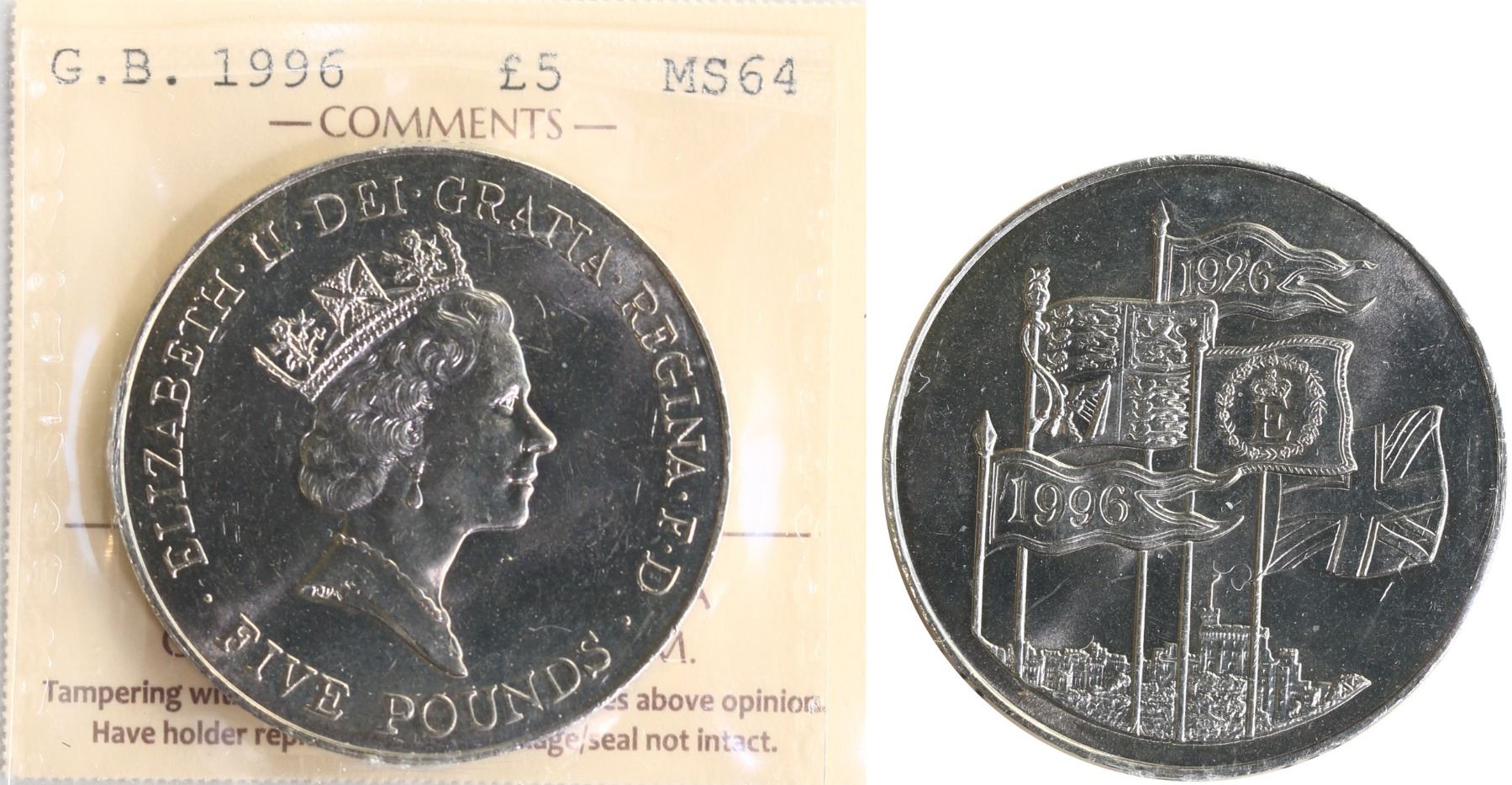 Great Britain; 1996 5£ ICCS MS64 KM #974
