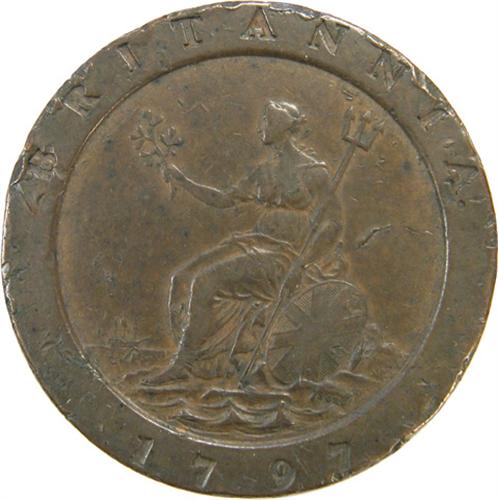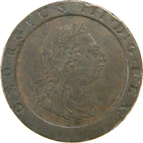2 Pence 1797 “Cartwheel”, F-VF. A very nice example with some of the usual surface nicks and rim bumps expected for the grade