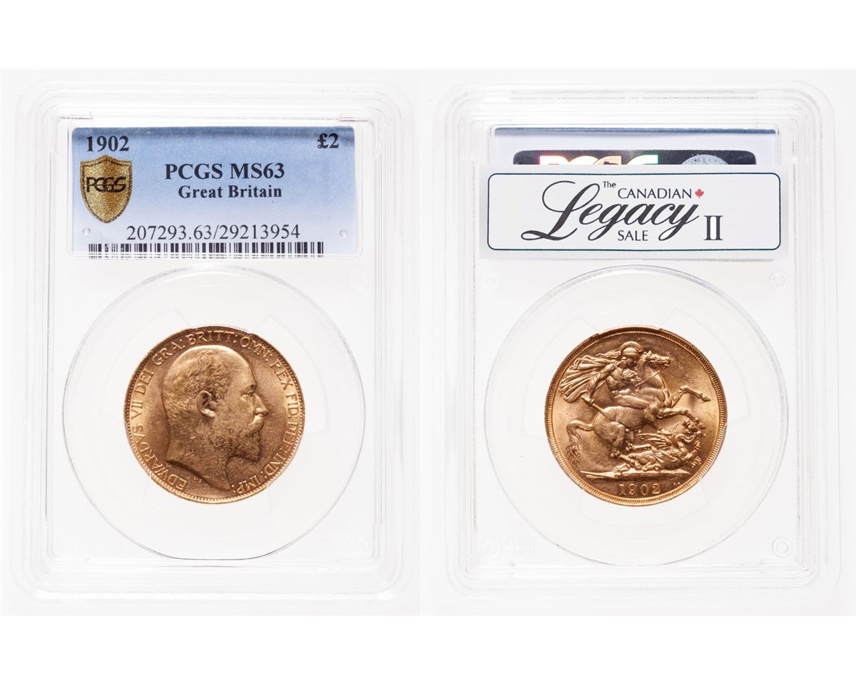 GREAT BRITAIN. 2 Pound. 1902. PCGS graded Choice Uncirculated-63. Gold .917, 15.9761g, .4708 oz AGW.