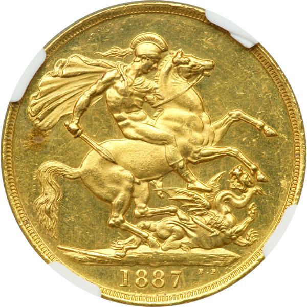 Great Britain. 2 Pounds, 1887. S.3865; Fr-391; KM-768. Victoria. Jubilee bust left. Reverse: St. George. NGC graded MS-62.