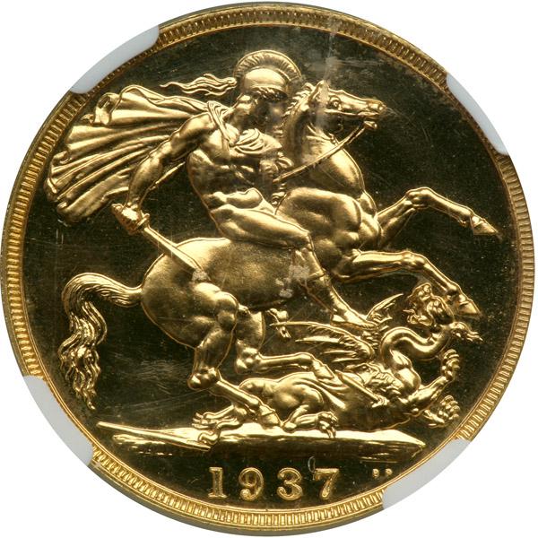 Great Britain. 2 Pounds, 1937. S.4075; Fr-410; KM-860. George VI. Head left. Reverse: St. George slaying dragon. NGC graded Proof 66 Cameo.