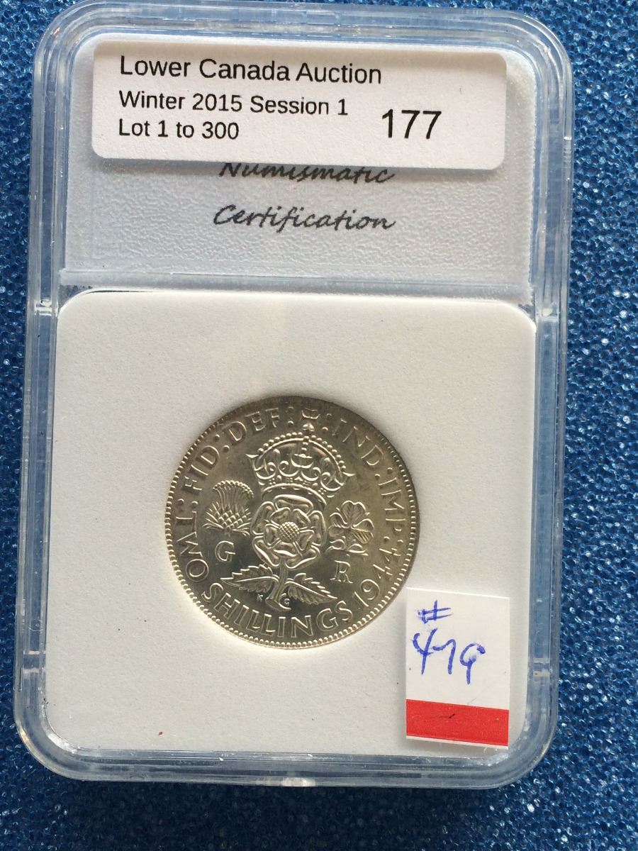 Great Britain 2 Shilling 1944; NNC certified MS-64.