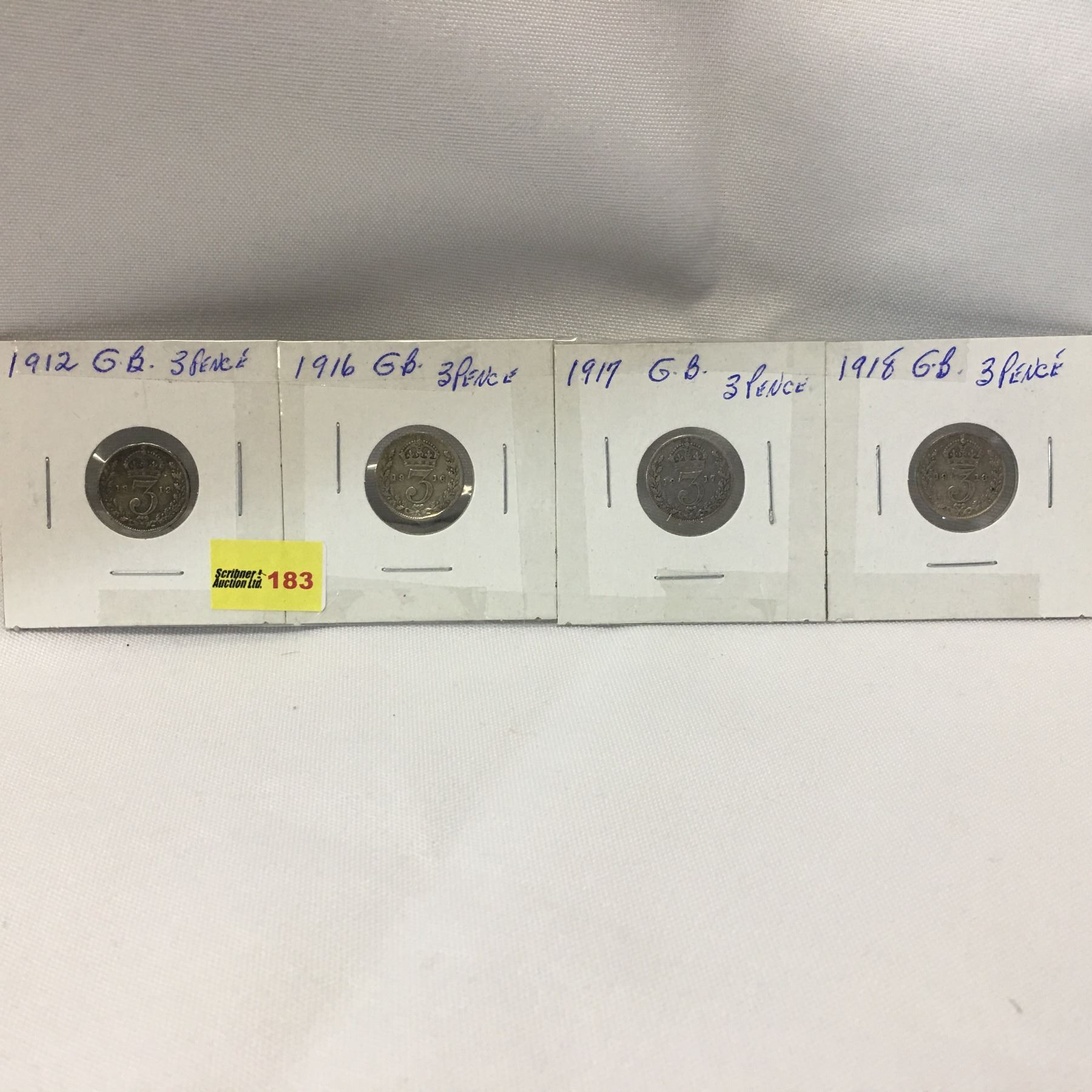 Great Britain 3 Pence - Set of 4: 1912; 1916; 1917; 1918