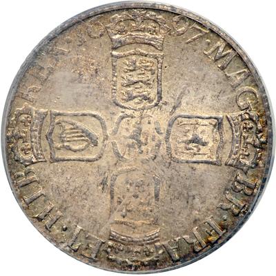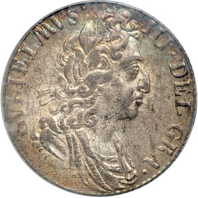 Great Britain. 6 Pence, 1697. S.3538; ESC-1566; KM-496.1. William III. Third bust. Large crowns. Slight softness of strike, original fresh mint luster with attractive toning. PCGS graded MS-63.