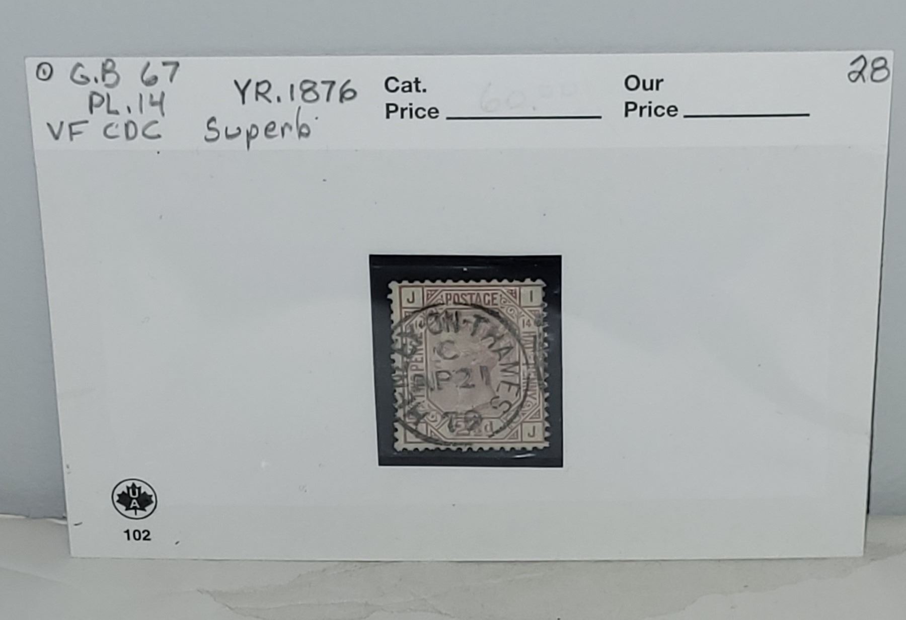 Great Britain 67 VF CDC Used Plate 14 "Superb" YR 1876