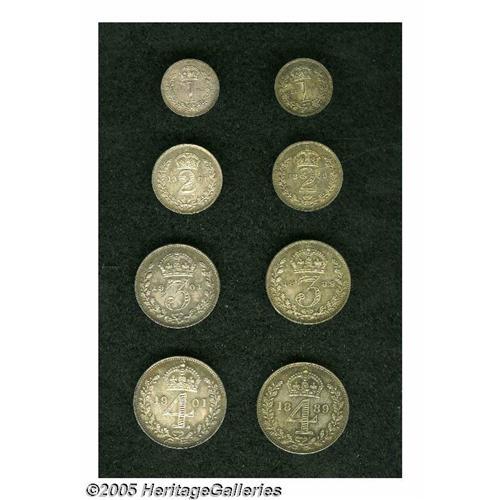 <B>A pair of Maundy sets including:</B></I> 1889, S-3932, toned AU to UNC; and a 1901, S-3943, toned AU to UNC. both are nice original sets. <B>A sold as is, no return lot.</B></I>