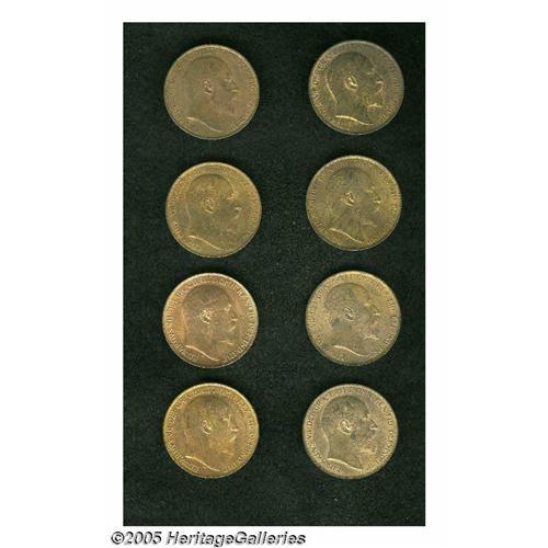 Great Britain. A partial set of UNC Edward VII cents, 1902-1909, m A partial set of UNC Edward VII c