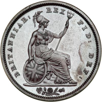 Great Britain. Bronzed Proof Penny, 1831. S.3845; KM-707. William IV, 1830-1837. Reverse inverted. Obverse: Bare head of King right. Reverse: Seated figure of Britannia facing right, holding ornamental trident in left hand. This is an exceptionally high quality example, crisply struck with precise detail. A beautiful chocolate proof which is free from the usual tiny scuffs and marks so often evident on these large copper specimens. NGC graded Proof 65 Brown.