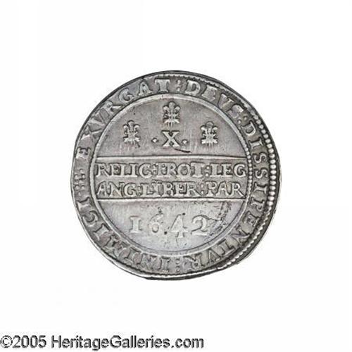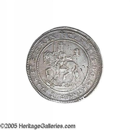 <B>Charles I Halfpound 1642, </B></I>Spink 2945, three Oxford plumes on the reverse, choice toned VF, a massive silver coin from the time of the English civil war.
