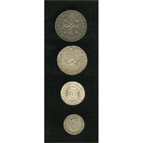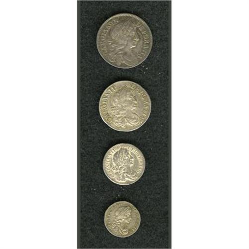 <B>Charles II Maundy set 1680,</B></I> S-3392, consisting of the normal four coins (penny through fourpence) as distributed on Maundy Thursday by the monarch. Virtually no original sets exist, as almost all of these entered circulation and remained in use for decades. These pieces are Fine to VF and are nicer than the typical assembled set. Classic designs with the intertwined C's on reverse.<BR><BR><b>Shipping:</b> Coins & Currency (<a target="_blank" href="http://www.heritageauctions.com/common/shipping.php">view shipping information</a>)