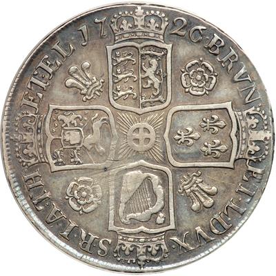 Great Britain. Crown, 1726. S.3639A; Dav-1345. George I, 1714-1727. Laureate and draped bust right. Reverse: Small roses and plumes in angles. Toned. ANACS graded VF-35.