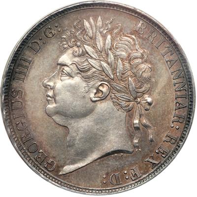 Great Britain. Crown, 1821. S.3805; ESC-246; Dav-104; KM-680.1. George IV. Secundo edge. Laureate head of King facing left. Reverse: Large St. George and dragon with date in exergue. Near flawless fields and a sharp strike with light rose color tone. PCGS graded MS-63.