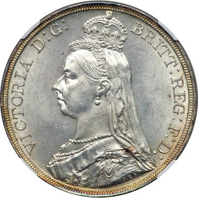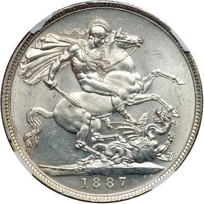 Great Britain. Crown, 1887. S.3921; ESC-296; Dav-107; KM-765. Victoria. Jubilee head. Brilliant lustrous example. In a new NGC 4 prong holder. NGC graded MS-63.