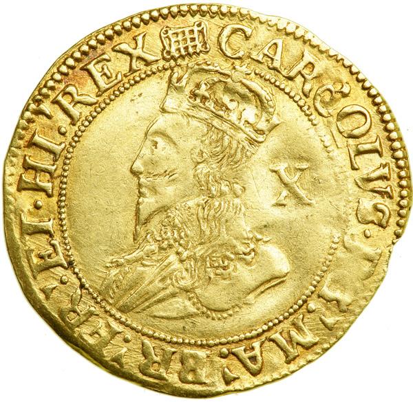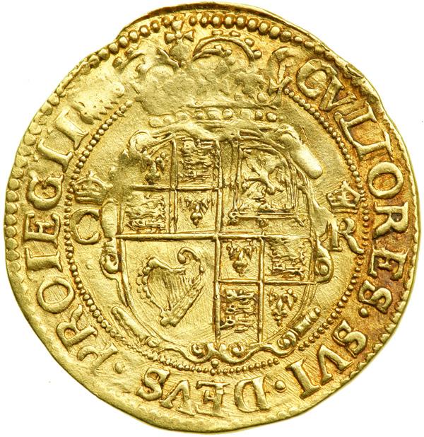 Great Britain. Double-crown, ND. S.2703; Fr-247. Charles I, 1625-1649. Tower mint under the King. Mint mark, Portcullis (1633-4). Crowned bust left with value behind head. Reverse: Crowned oval shield with C R at sides. NGC graded VF-35.