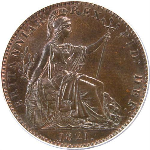 Farthing 1821 Dot ICG MS-64 Red and Brown. Fully struck with great lustre and traces of red