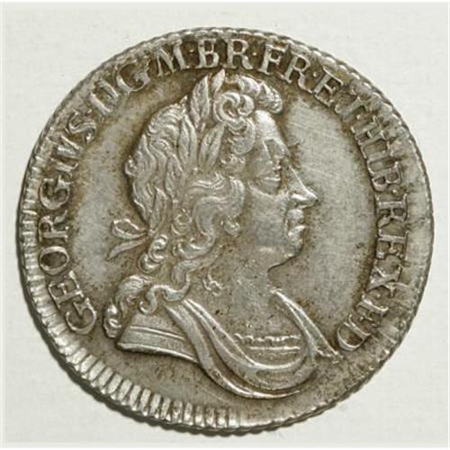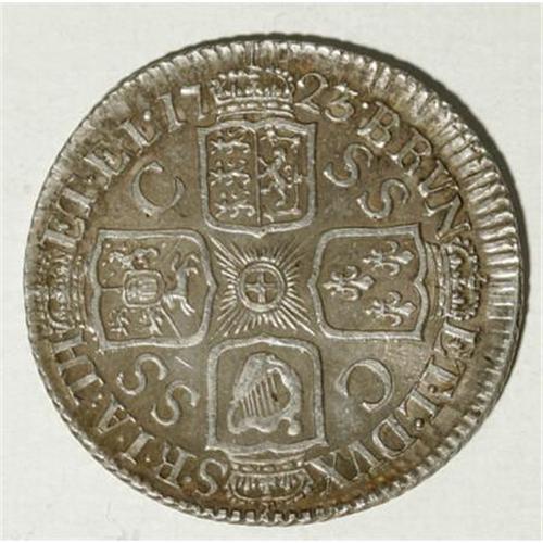 <B>George I Shilling 1723-SSC,</B></I> S-3648, 2nd bust, About XF, mis-struck somewhat off center, also slightly double-struck on the king's face.<BR><I>From The Madison Collection.</B></I><BR><BR><b>Shipping:</b> Coins & Currency (<a target="_blank" href="http://www.heritageauctions.com/common/shipping.php">view shipping information</a>)