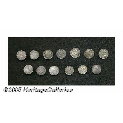 <B>George II, III and IV Maundy 1 Pence lot as follows:</B></I> 1750 XF, 1760, AU, 1772 XF, 1786 XF, 1786 AU, 1800 VF, (2) 1800 XF, (3) 1800 AU, 1822 XF with rim bumps; and 1825 XF. <B>A sold as is, no return lot.</B></I>