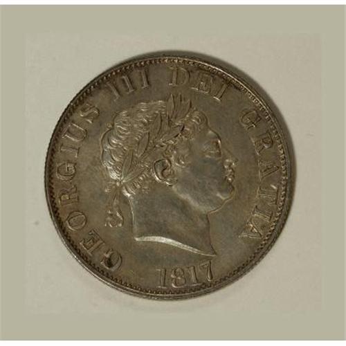 <B>George III Halfcrown 1817,</B></I> Small Head, S-3789, AU with light gray toning, quite desirable.<BR><BR><b>Shipping:</b> Coins & Currency (<a target="_blank" href="http://www.heritageauctions.com/common/shipping.php">view shipping information</a>)