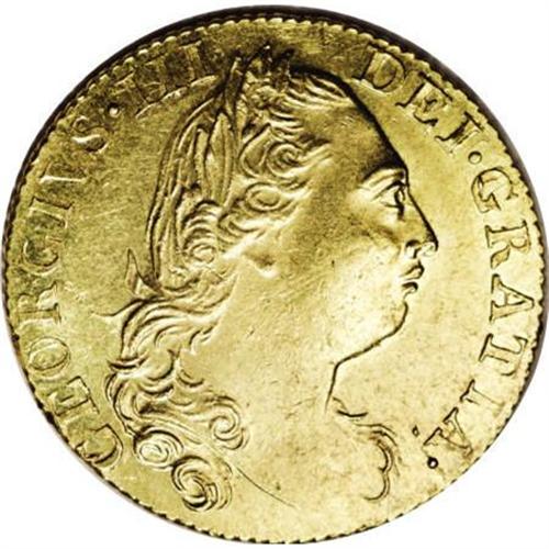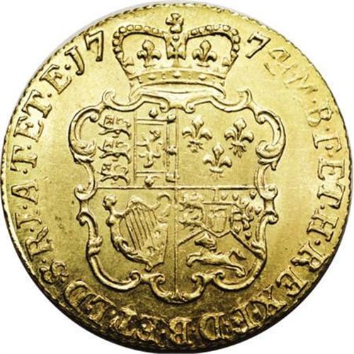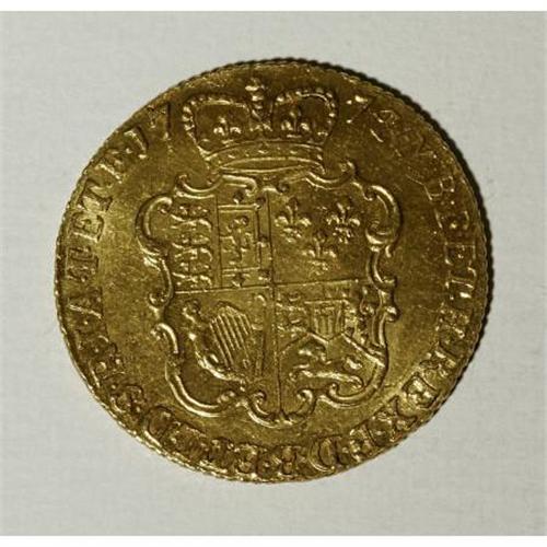 <B>George III Rose Guinea 1774,</B></I> S-3728, 4th bust, lustrous AU and choice but for a somewhat soft strike on the portrait, and on the last digit of the date, but this is more than forgiven by the overall beautiful appearance of this coin, which is super clean, without hardly any marks, and softly lustrous. Scarce.<BR><BR><b>Shipping:</b> Coins & Currency (<a target="_blank" href="http://www.heritageauctions.com/common/shipping.php">view shipping information</a>)