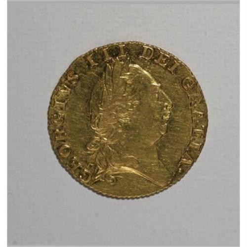 <B>George III Spade Guinea 1787,</B></I> S-3729, distinctive first year of this type, the portrait differing slightly from that used on other dates, lightly cleaned XF retaining some luster. Very scarce.<BR><BR><b>Shipping:</b> Coins & Currency (<a target="_blank" href="http://www.heritageauctions.com/common/shipping.php">view shipping information</a>)