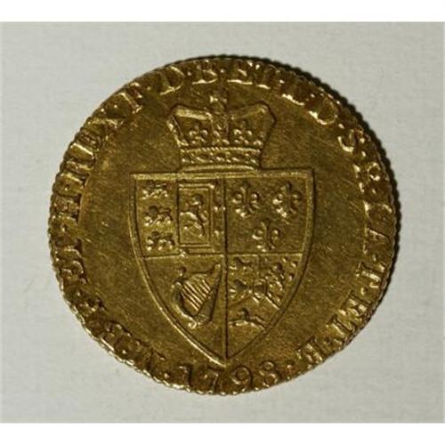 <B>George III Spade Guinea 1798,</B></I> S-3729, lustrous XF-AU.<BR><BR><b>Shipping:</b> Coins & Currency (<a target="_blank" href="http://www.heritageauctions.com/common/shipping.php">view shipping information</a>)