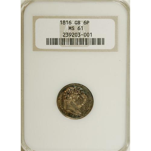 <B>George III & Victoria:</B></I> George III Sixpence 1816, MS61 NGC, light blue toning; Shilling 1816, MS63 NGC, light silvery gray; Victoria Gothic Florin 1883, "UNC details Net MS60" ANACS, which is baloney: this is a pleasing BU coin with silvery luster that any collector in the UK would love to own.<BR><BR><b>Shipping:</b> Coins & Currency (<a target="_blank" href="http://www.heritageauctions.com/common/shipping.php">view shipping information</a>)