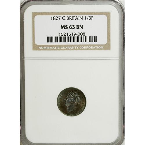 <B>George IV copper Third Farthing 1827,</B></I> KM-703, MS63 BN NGC.<BR><BR><b>Shipping:</b> Coins & Currency (<a target="_blank" href="http://www.heritageauctions.com/common/shipping.php">view shipping information</a>)
