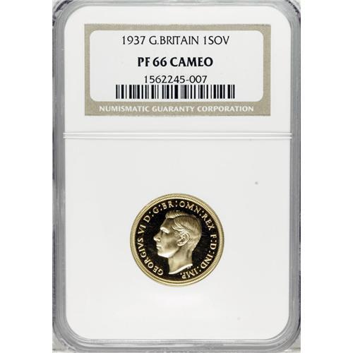 <B>George VI Proof Sovereign 1937,</B></I> S-4076, PR66 Cameo NGC. What is there to say? Just gorgeous!<BR><BR><b>Shipping:</b> Coins & Currency (<a target="_blank" href="http://www.heritageauctions.com/common/shipping.php">view shipping information</a>)